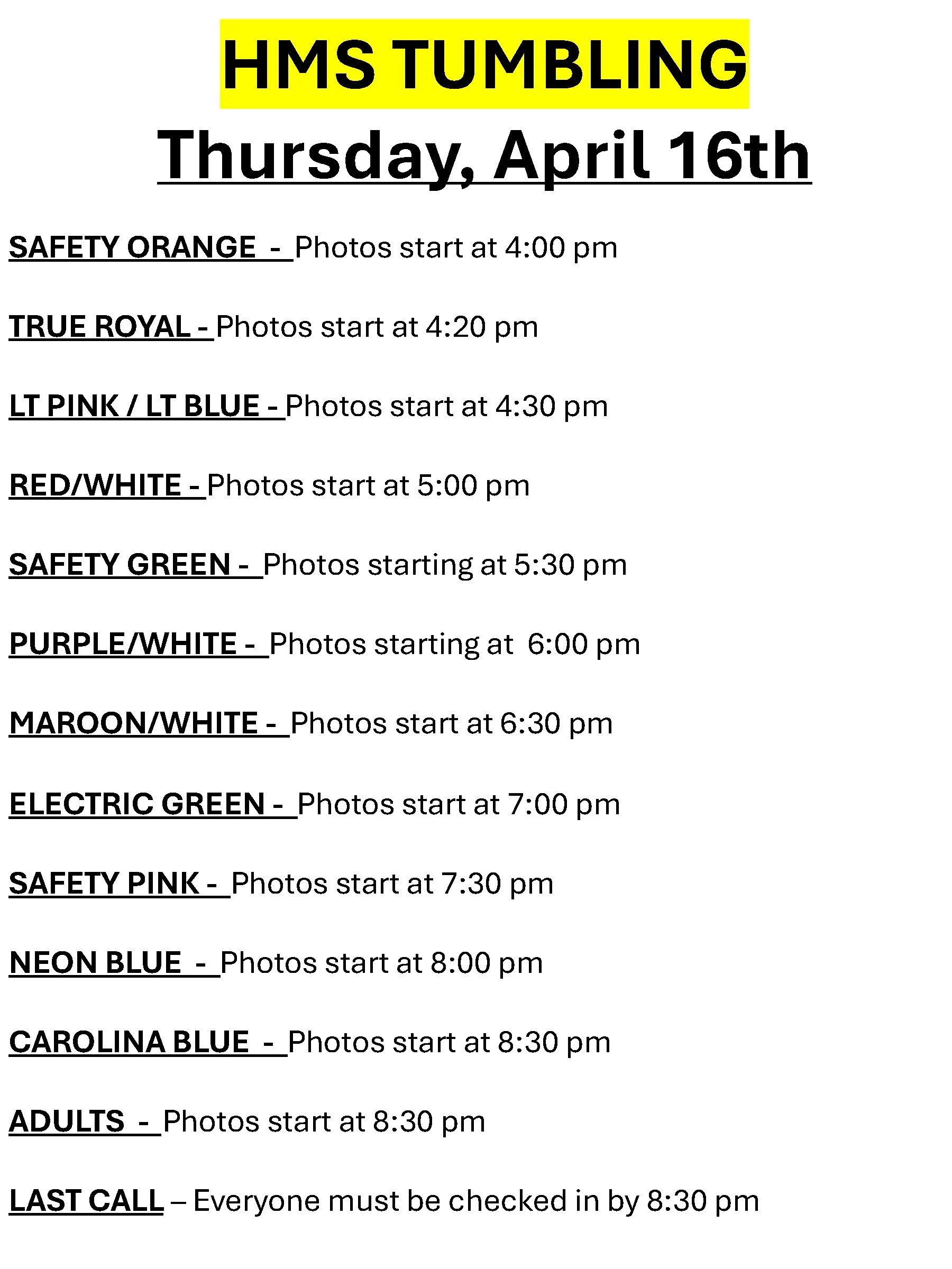 Thursday, April 16th at the HMS High School Lunchroom.